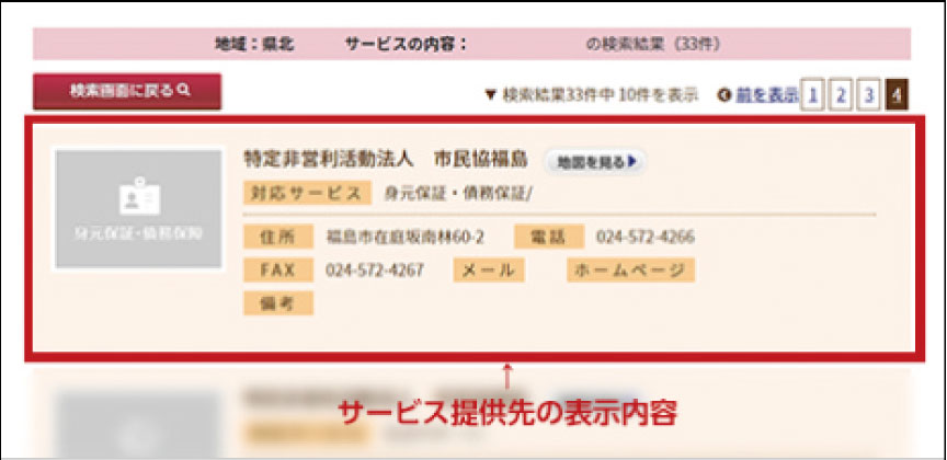 ②「サービス提供先を検索」をクリックすると、このページが開きます。