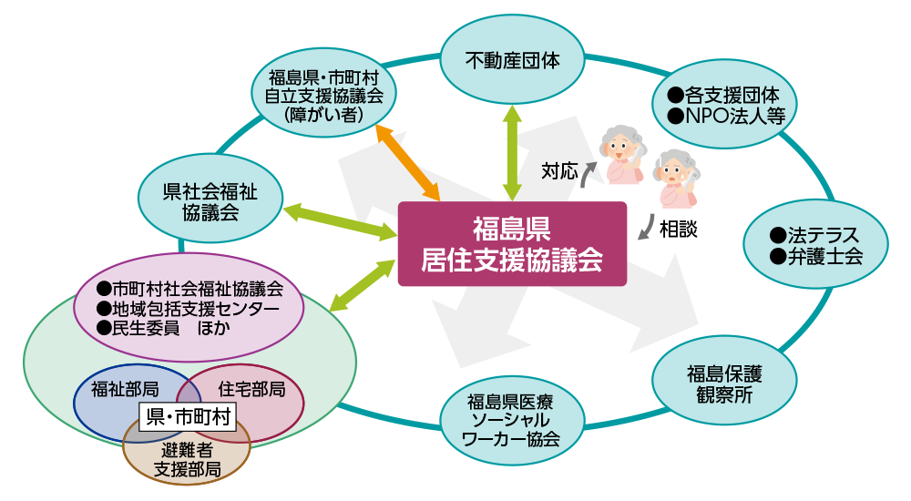 協議会では、これまで住宅確保要配慮者(低額所得者、被災者、高齢者、障がい者、子どもを育成する家庭その他住宅の確保に特に配慮を要する者)からの民間賃貸住宅への入居に関する相談対応とともに、東日本大震災被災者及び原発事故避難者の住宅再建相談や情報提供を行ってまいりました。