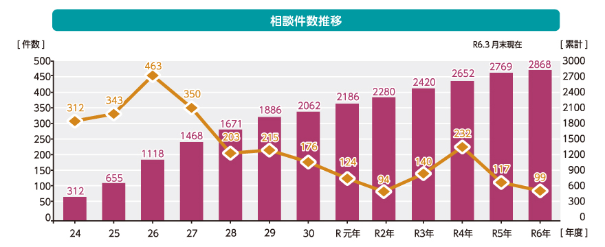 平成24年7月~令和7年3月までに2,868件の相談に対応いたしました。