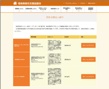 福島県居住支援協議会ホームページに住宅確保要配慮者居住支援法人の特徴や実施するサービス概要を紹介するページに3団体の情報を掲載しています。