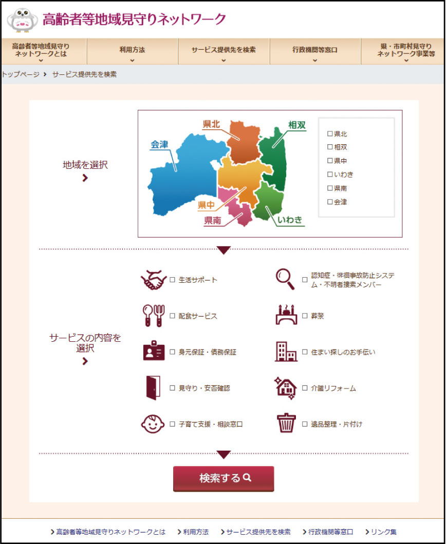 ②「サービス提供先を検索」をクリックすると、このページが開きます。
