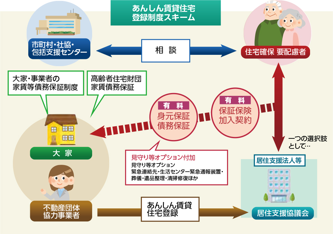 高齢者、障害者、子育て世帯等、住宅の確保に配慮が必要な方は今後も増加する見込みですが、一方で、民間の空き家・空き室は増加していることから、それらを活用して住宅確保要配慮者の入居を拒まない賃貸住宅の供給を促進することを目的として平成29年(2017年)に設立された制度※です。